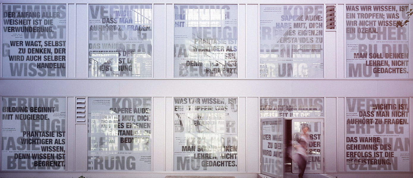 A glass facade designed graphically so it can also provide shade? The architect's office «Heider Zeichardt Architects» based in Hamburg, Germany renovated the High School Buckhorn in 2013 and instructed EINS23 with the graphical development of such a facade.